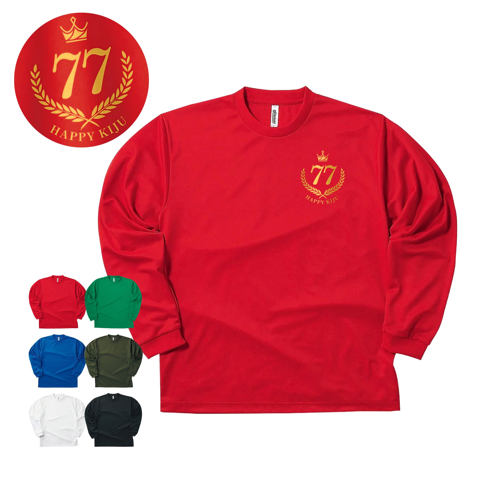 プリントTシャツ ロングT 王冠 月桂樹 長袖 名入れ シンプル オリジナル ドライメッシュ glimmer オーダーメイド 卒業記念 応援用 チーム