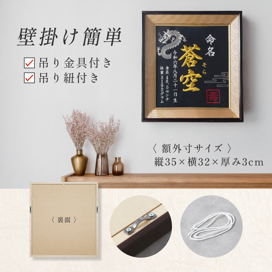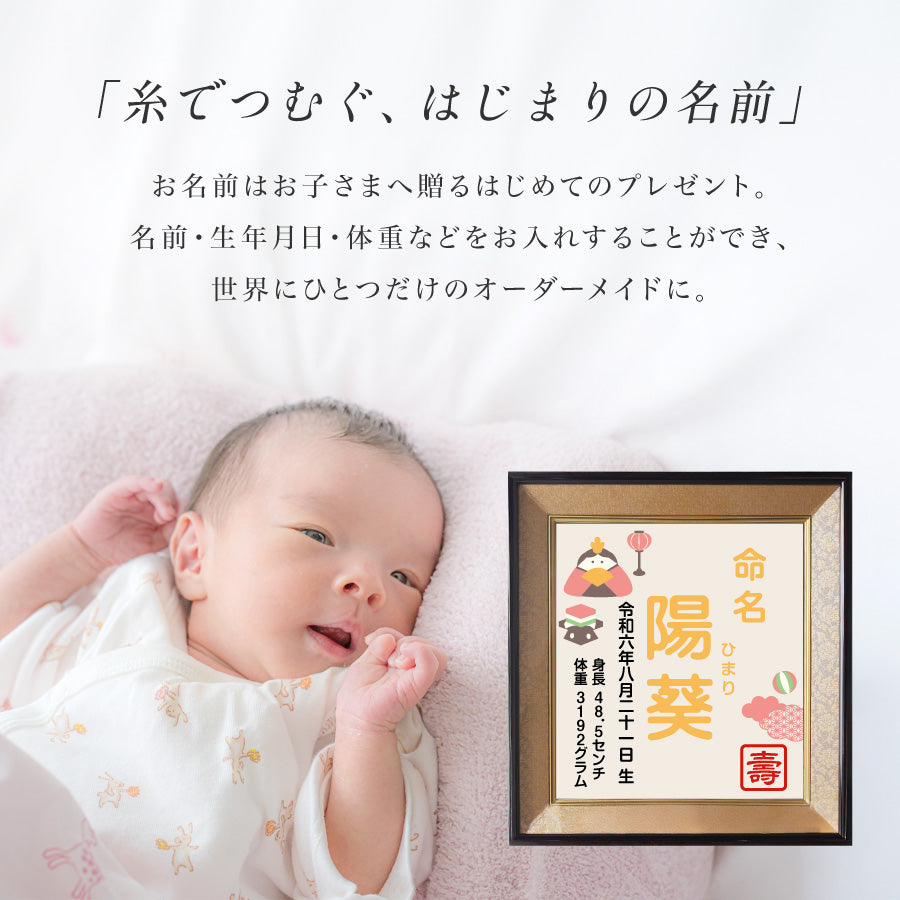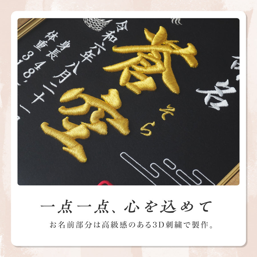 命名書 3D刺繍入り 命名額 刺繍命名書 額縁仕上げ 刺繍 3D刺繍 アート額 命名紙 名入れ 名前入り 日本製 額縁付き フレーム付き 壁掛け