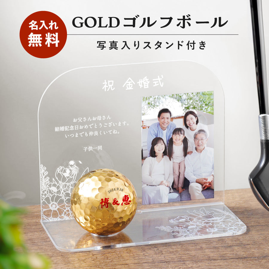 アクリルスタンド ゴルフボール セット ゴールド 名入れ 文字入れ 写真 プリント アクリル 写真スタンド フォトフレーム