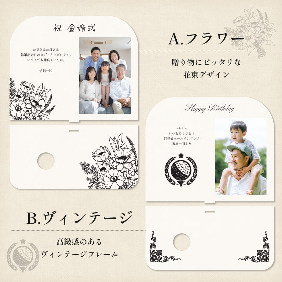 | 商品説明 | お名前やメッセージを入れてつくるオシャレなゴルフボールとお写真とメッセージをプリントしたアクリルスタンドのセット。 世界にひとつだけのオリジナルが作れます。 また、記念日の贈り物など、様々なシーンで喜ばれます! |