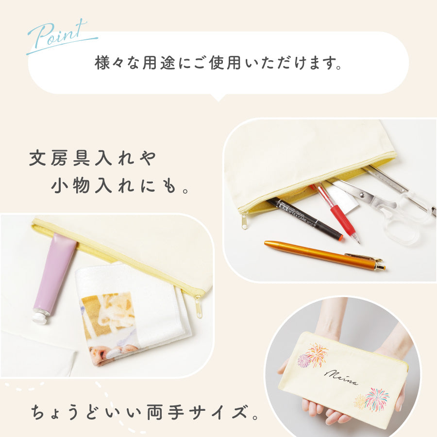 花火 名入れ お名前 ポーチ 小物入れ 入れ物 マチなし 文房具入れ 筆記用具 入学 お祝い おしゃれ かわいい 小さめ 大きめ ワンポイント