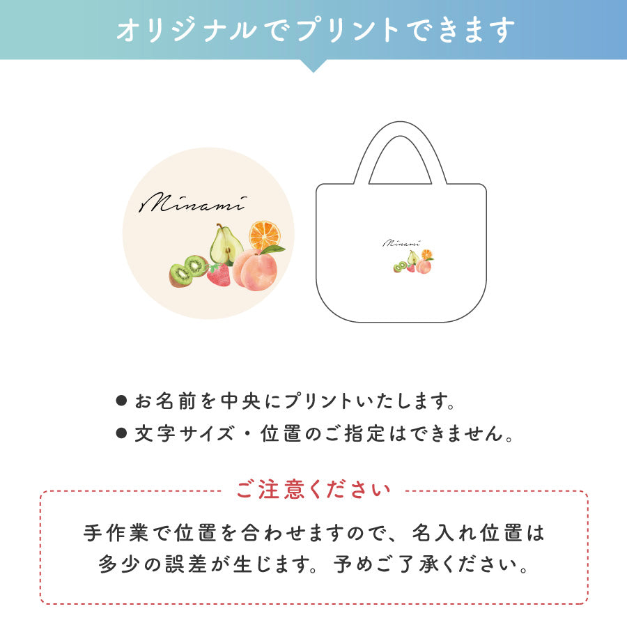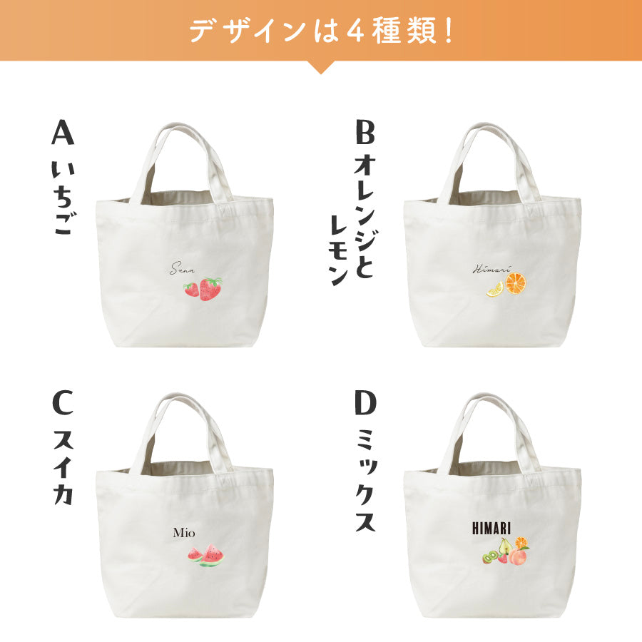 フルーツ くだもの 名入れ トートバック 名入れ無料 名前入れ バッグ トート 自立する 小さめ 軽い キャンバス生地 弁当 ランチ 着替え お母さん 母 お父さん