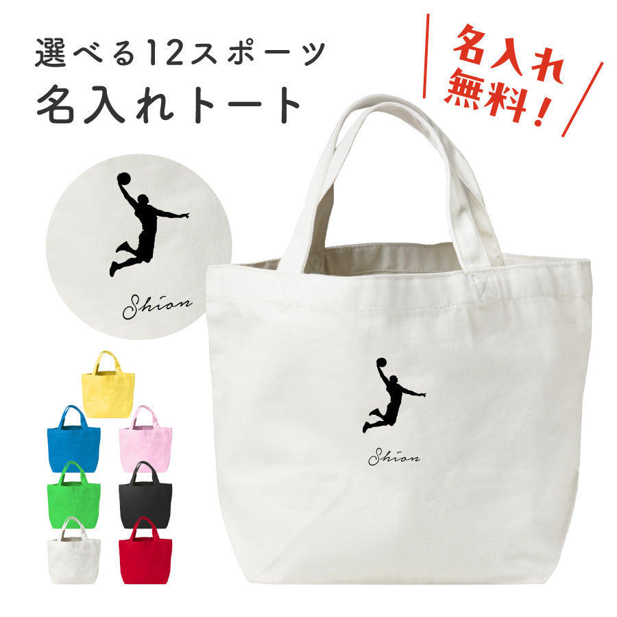 スポーツ 名入れ トートバック 名入れ無料 名前入れ バッグ トート 自立する 小さめ 軽い キャンバス生地 弁当 ランチ 着替え お母さん