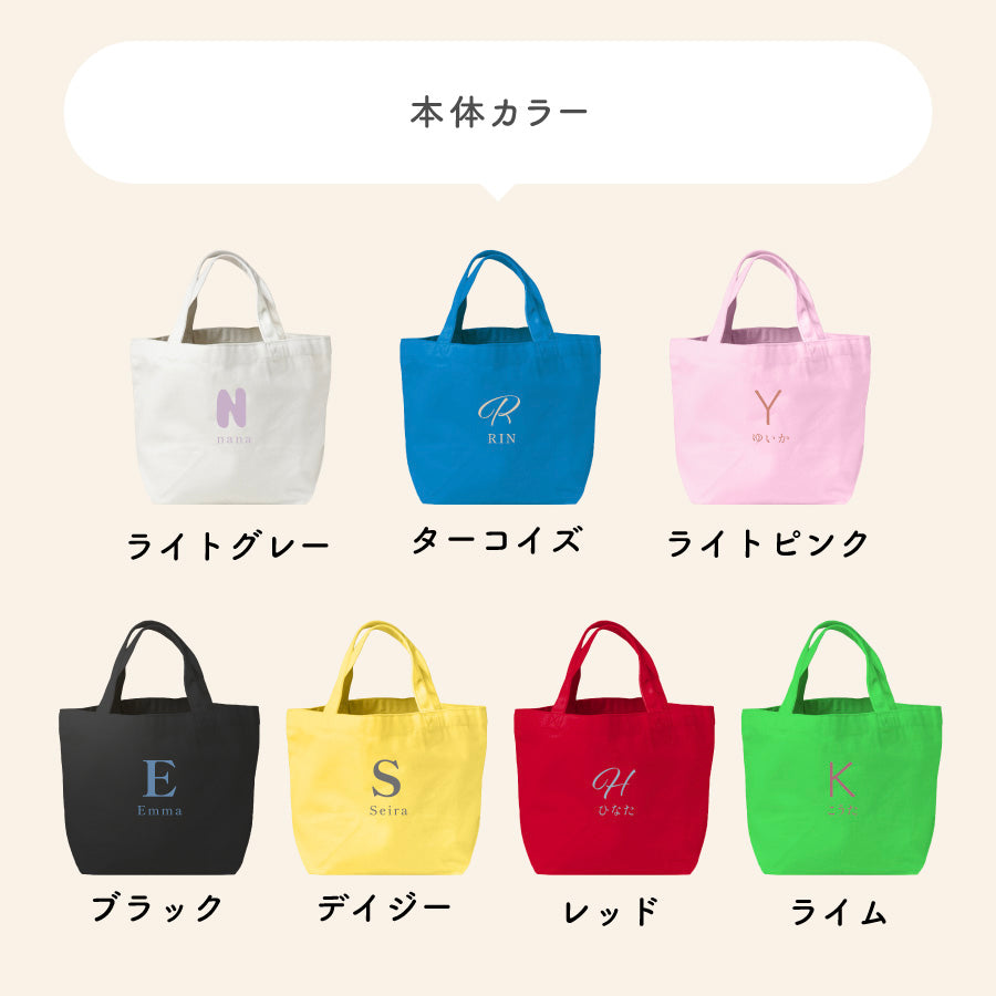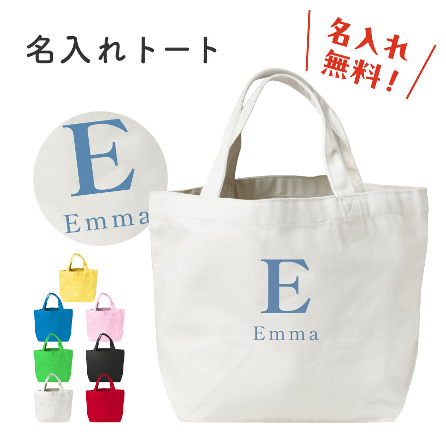 イニシャル 名入れ トートバック 名入れ無料 名前入れ バッグ トート 自立する 小さめ 軽い キャンバス生地 弁当 ランチ