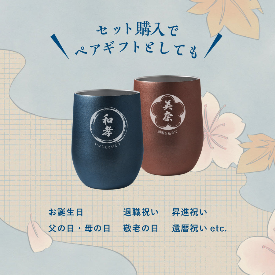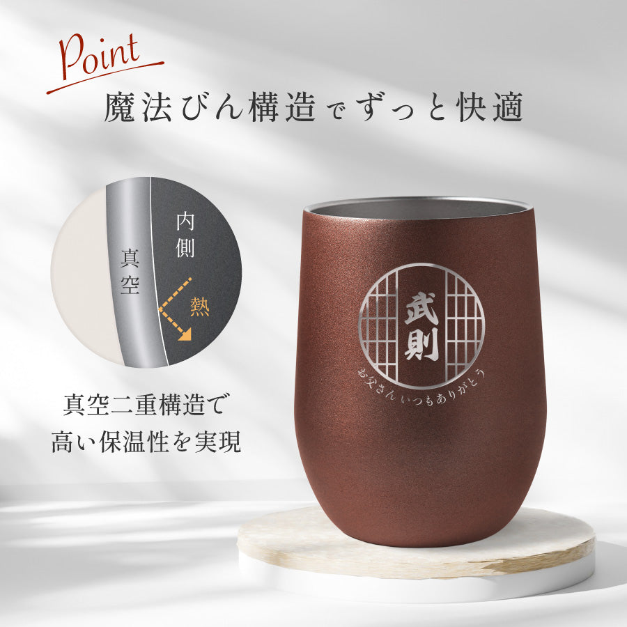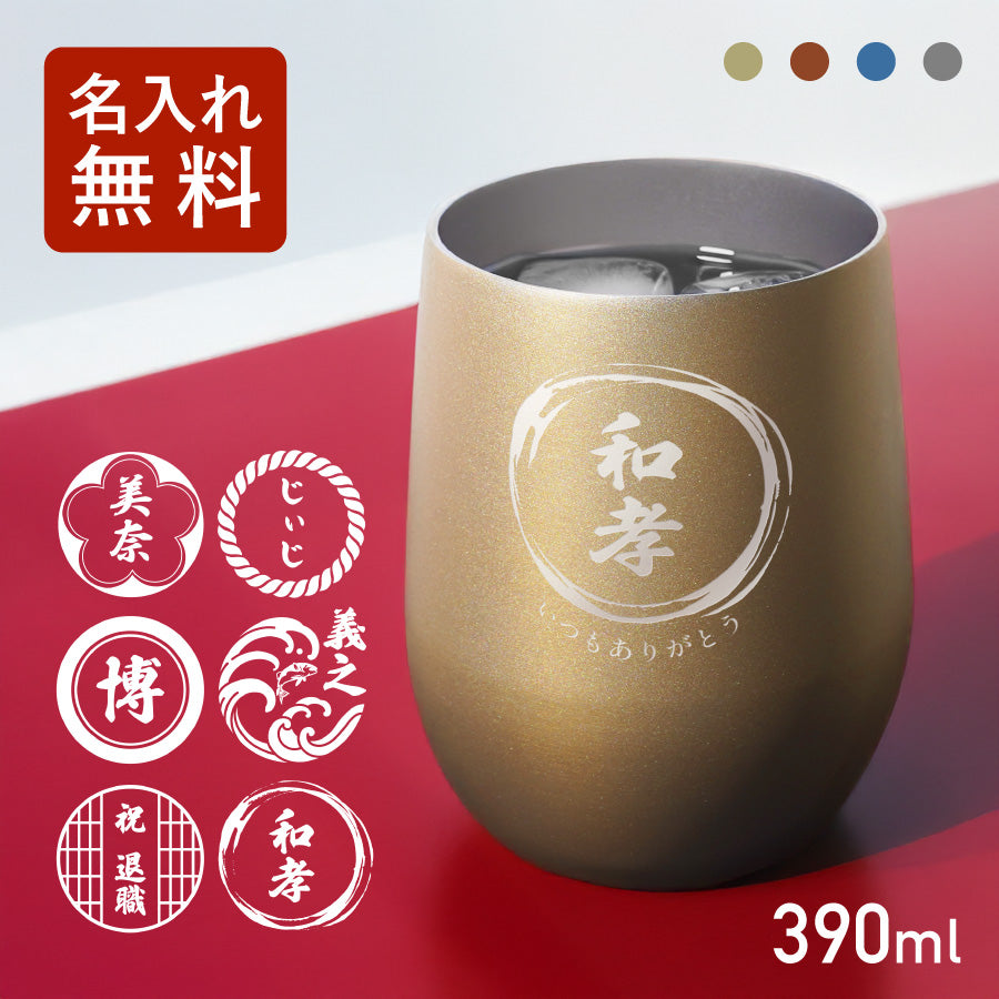 名入れ 和風 ぽってりステンレスタンブラー 390ml 和柄 家紋 筆記体 オリジナル シンプル 魔法瓶 軽量 真空