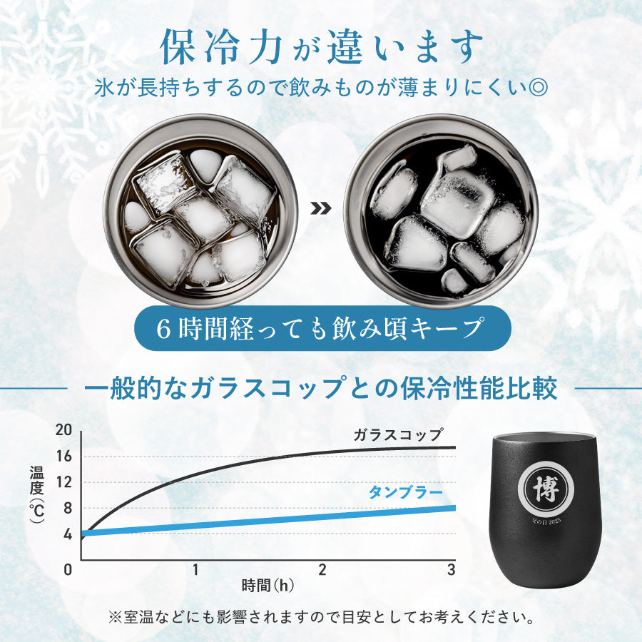 「贈り物に特別なひとときを。名入れ対応・高級感あふれるタンブラー」 ギフトラッピングとメッセージカードを無料で対応しております! シンプルで洗練されたデザインはどんなシーンにもマッチします。 容量390mlで気軽に使えるのも魅力です。 さらに名入れ対応も可能。大切な方のお名前やメッセージを名入れすれば、記念日や誕生日の特別なギフトとしてぴったりです。高級感ある仕上がりで、夫婦や恋人、家族や友人へのプレゼントにも喜ばれます。