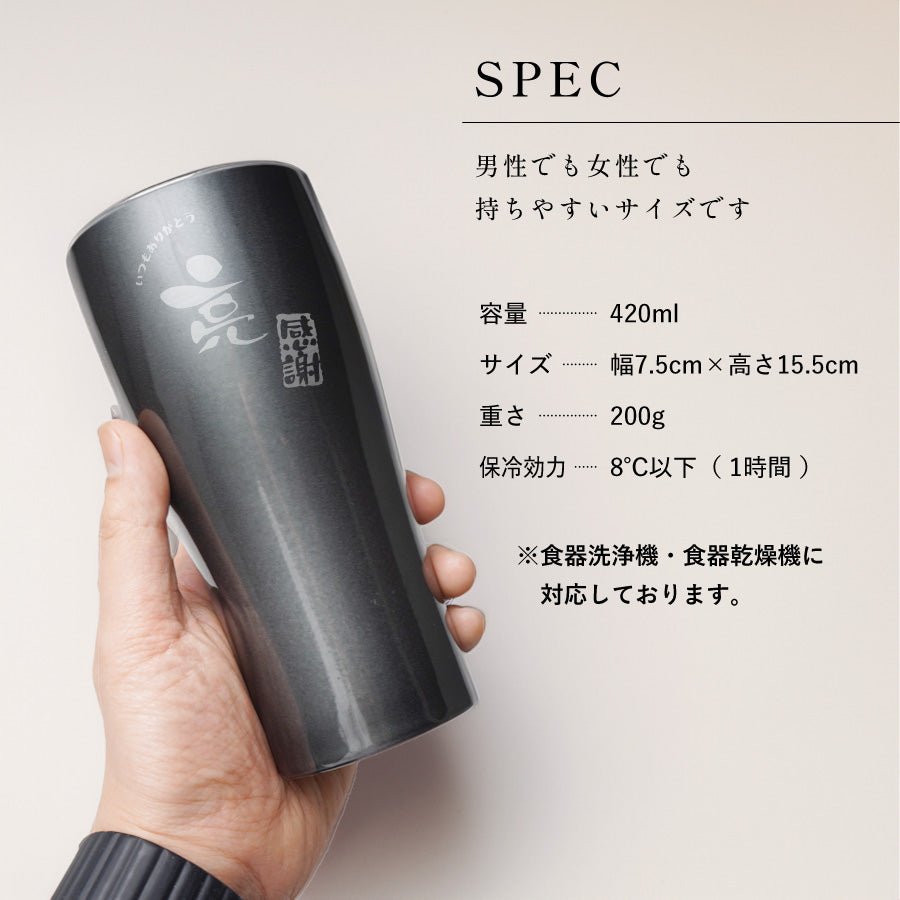 | 商品説明 | 名前を入れてつくるオシャレな名入れサーモスタンブラー。 世界にひとつだけのオリジナルが作れます。 ペアグラスとして大切な人とのお揃いのプレゼントに また、記念日の贈り物など、様々なシーンで喜ばれます! |