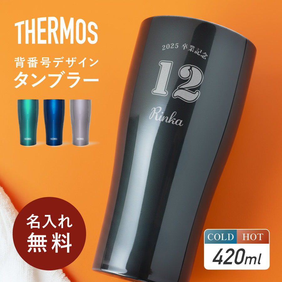 背番号 サーモス THERMOS 真空断熱 タンブラー 部活 名入れ 420ml 名前入り イニシャル カラー ステンレス 文字入れ コップ グラス 蓋 洗いやすい 食洗機対応