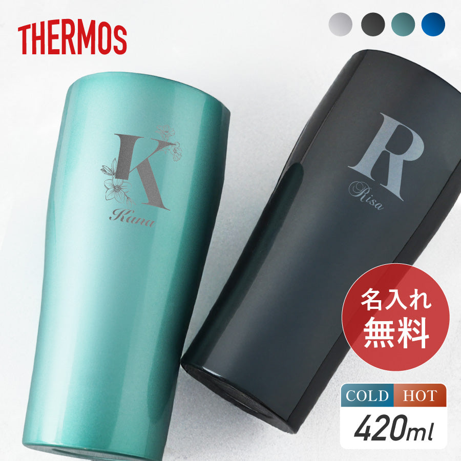 イニシャル サーモス THERMOS 真空断熱 タンブラー 名入れ 420ml 名前入り イニシャル カラー ステンレス 文字入れ コップ グラス 蓋 洗いやすい 食洗機対応