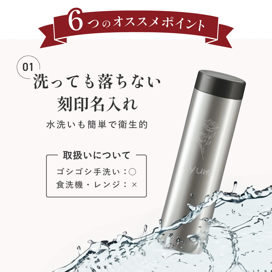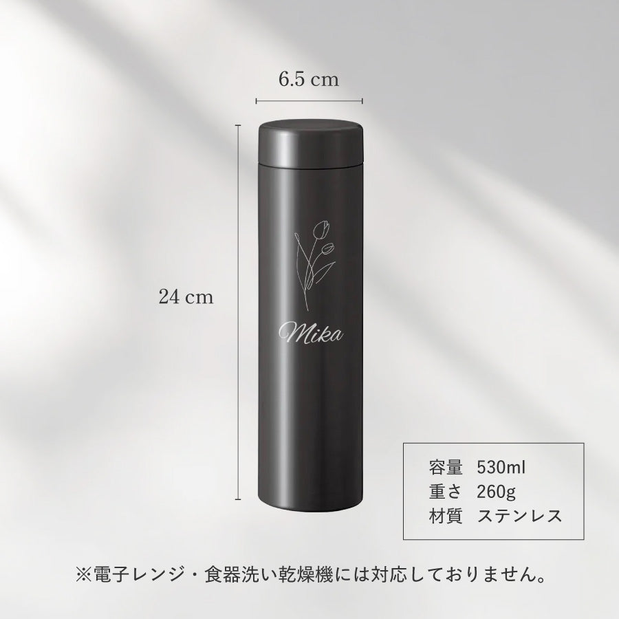 花柄 名入れ ドリンクボトル 530ml スリム 軽量 真空断熱 かばんに入る バック 細め ウォーターボトル マイボトル 水筒 ボトル