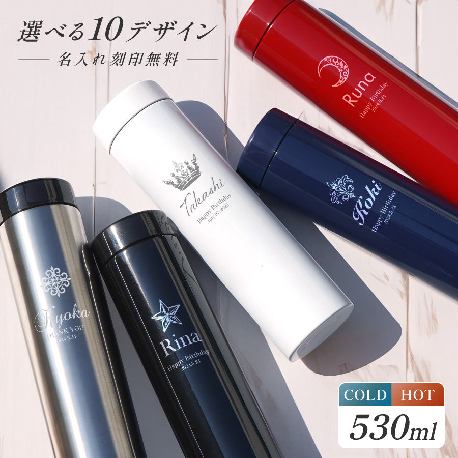 ワンポイント 名入れ ドリンクボトル 530ml スリム 軽量 真空断熱 かばんに入る バック 細め ウォーターボトル マイボトル 水筒 ボトル
