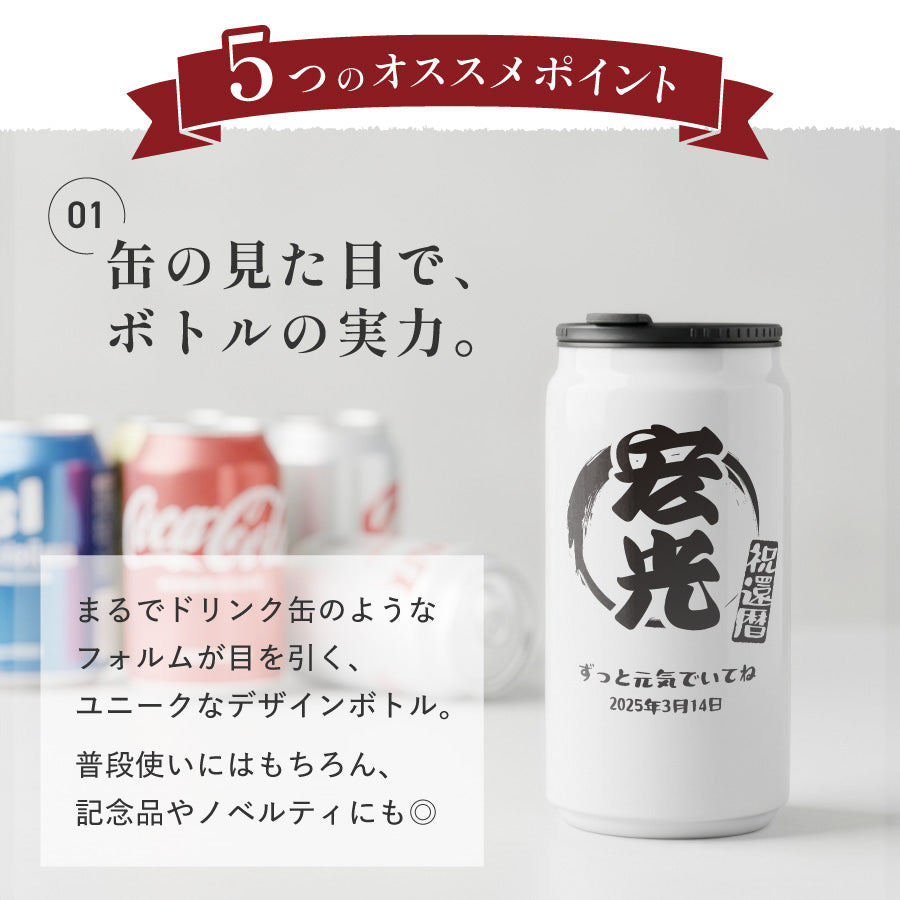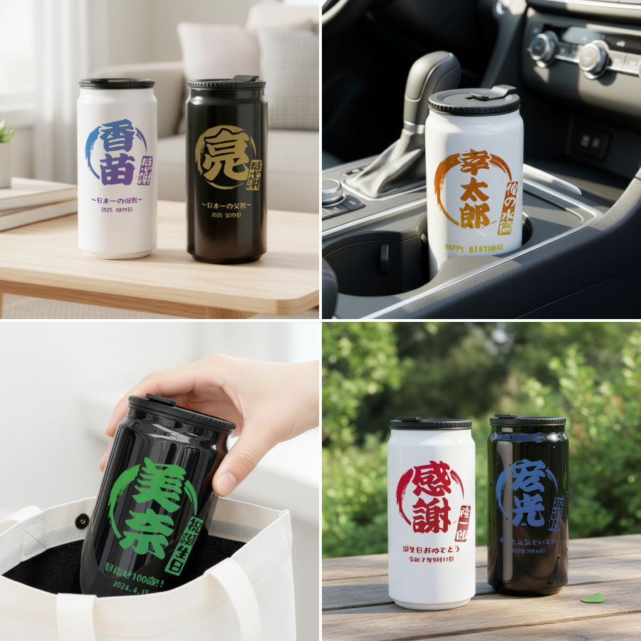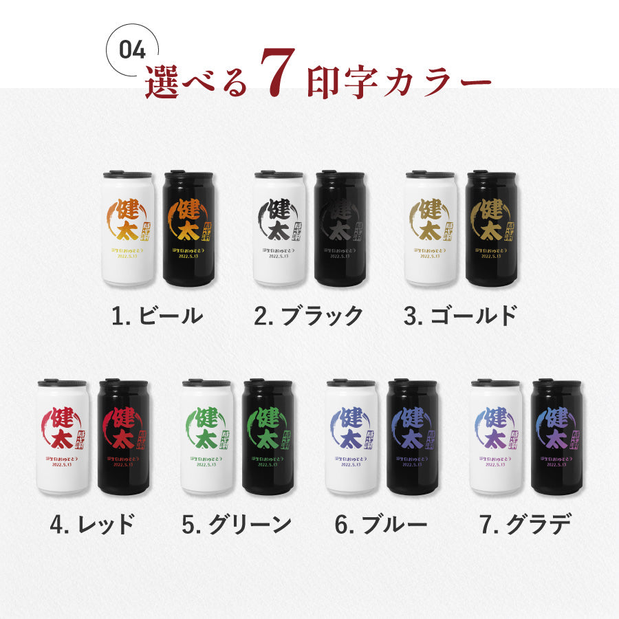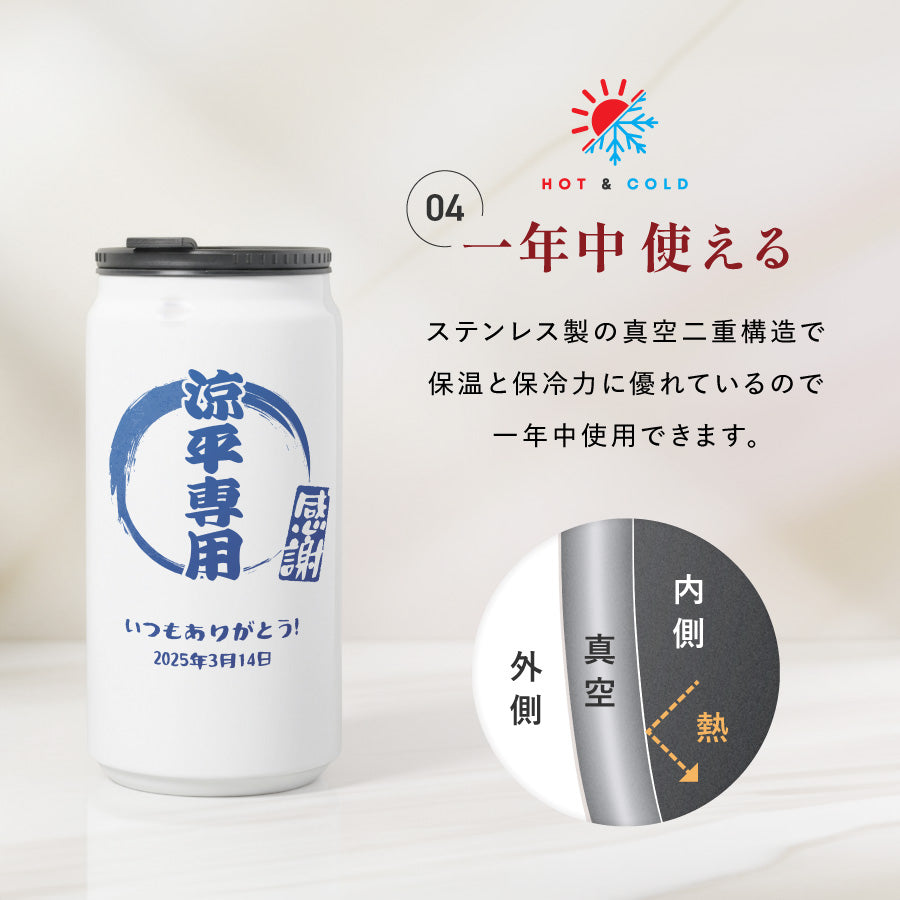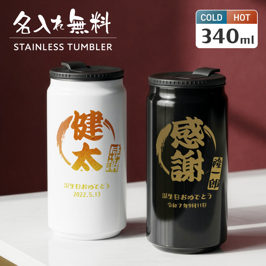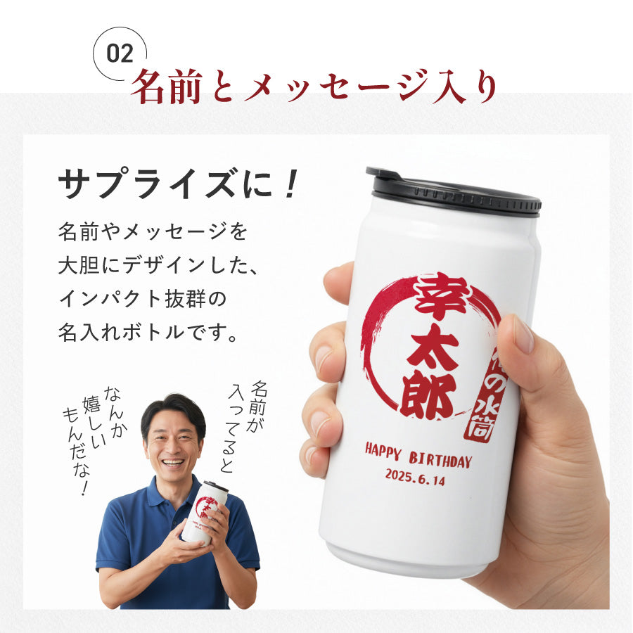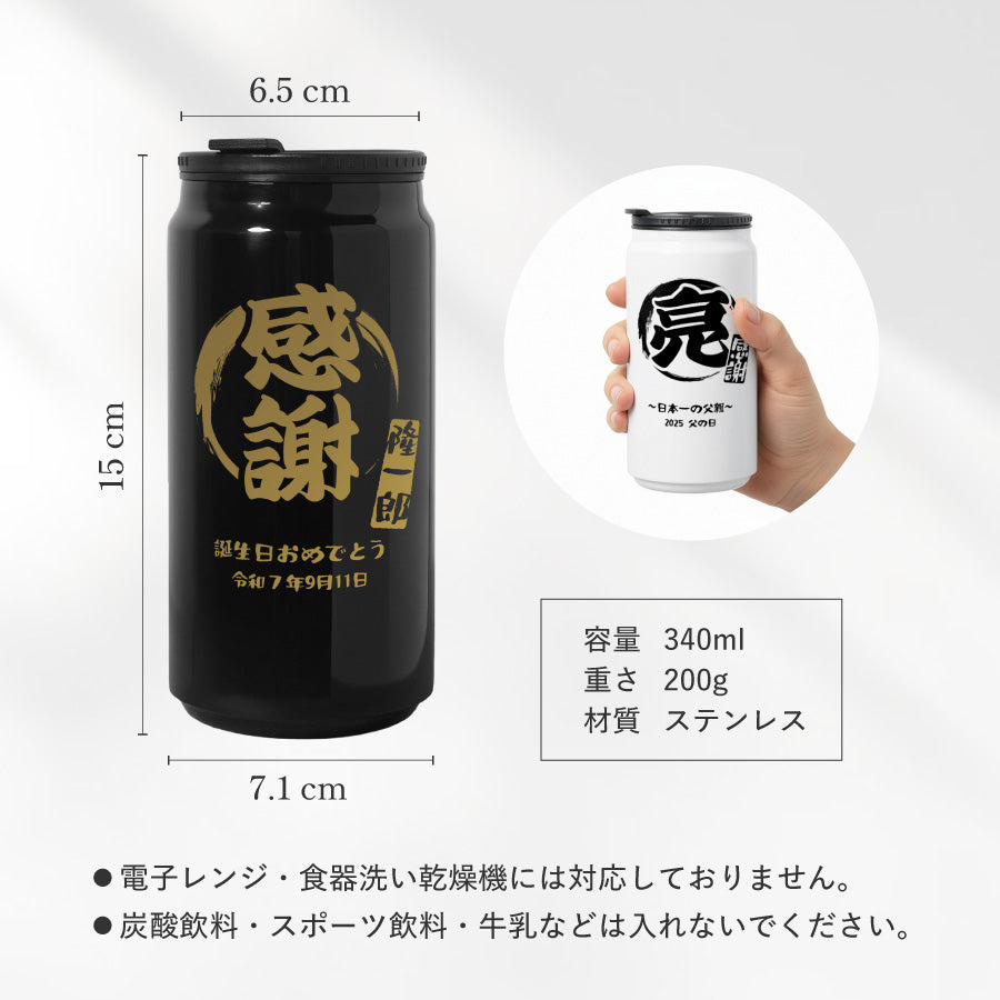 和柄風 和風 筆文字 ボトル 名入れ ドリンク缶型 名入れ ボトル タンブラー メッセージ 日付 真空断熱 340ml 名前入り カラー ステンレス 文字入れ