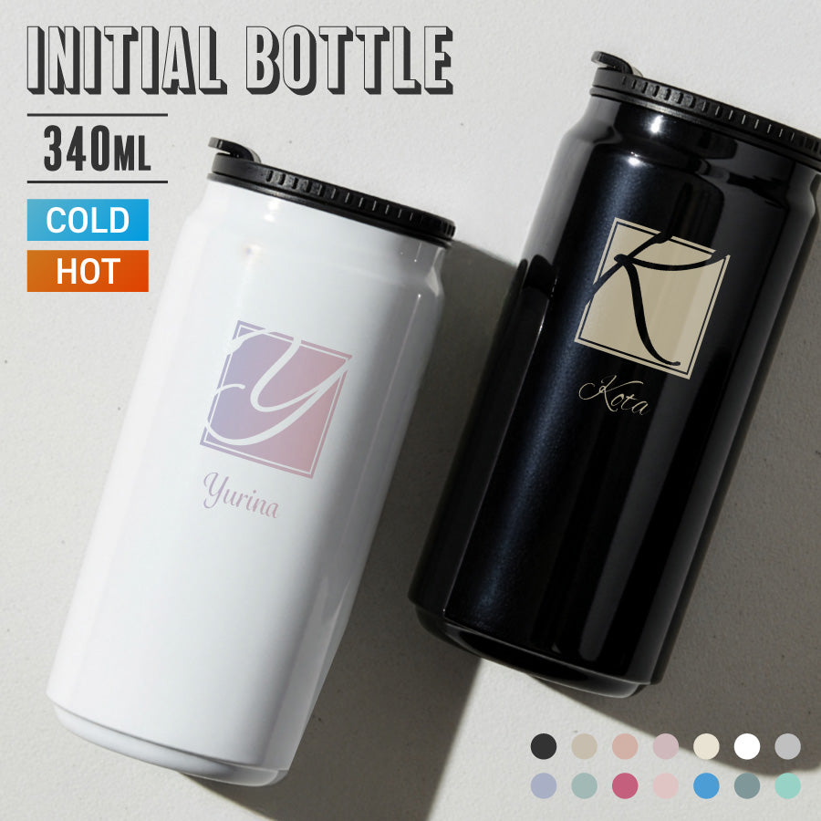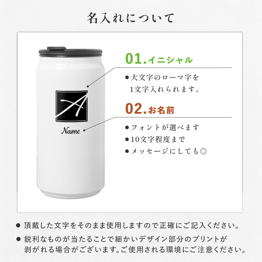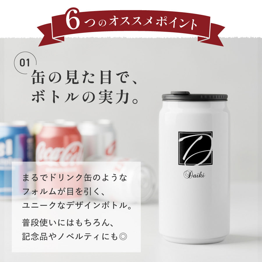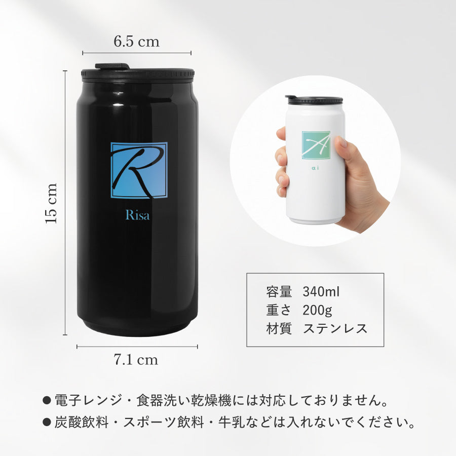 イニシャルデザイン マイボトル 名入れ ドリンク缶型 ボトル 缶 タンブラー 真空断熱 340ml 名前入り カラー ステンレス 文字入れ コップ グラス