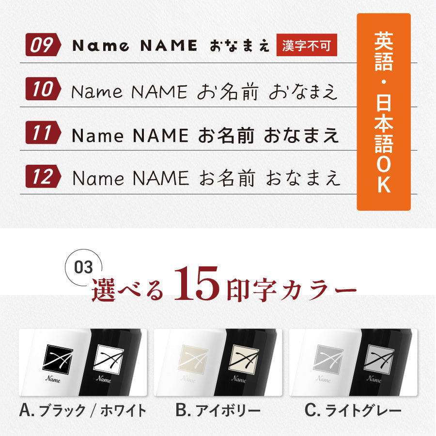 12種類のフォントからお選びいただけます。
