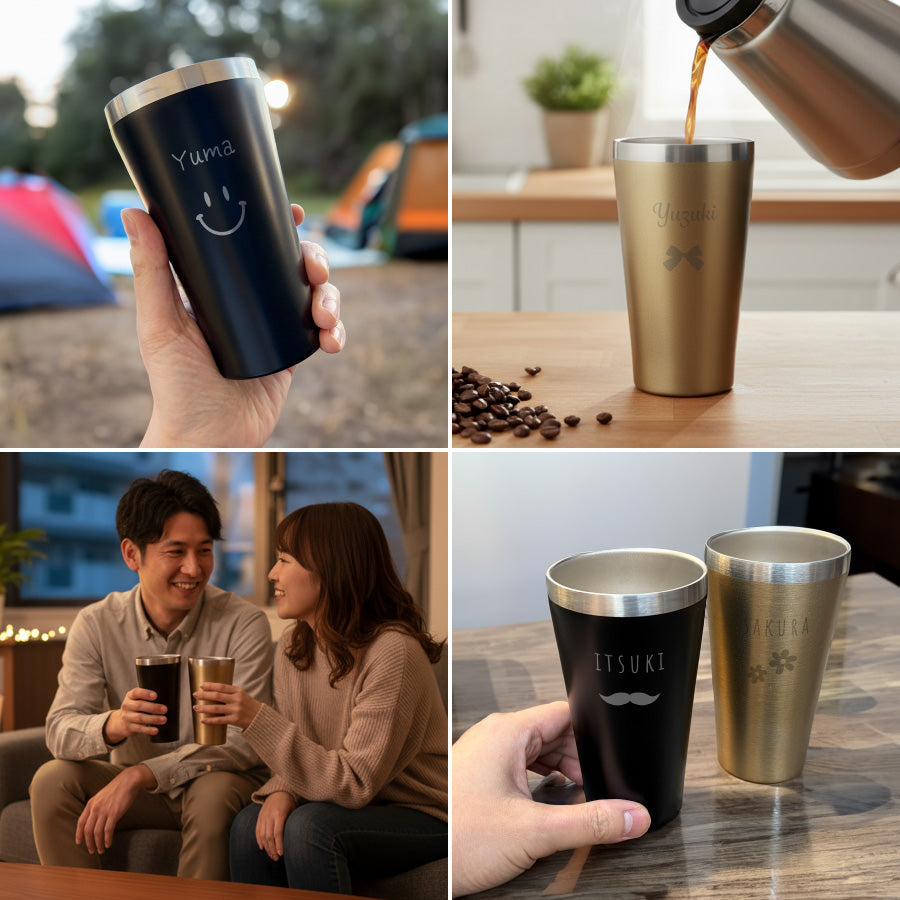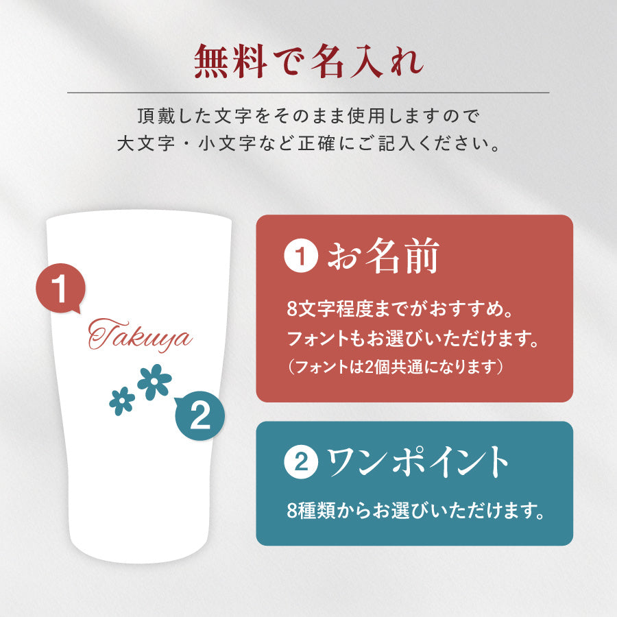 ペアタンブラー 名入れ ワンポイント 真空断熱 タンブラー セット 350ml 名前入り カラー ステンレス 文字入れ コップ グラス ギフトセット 洗いやすい