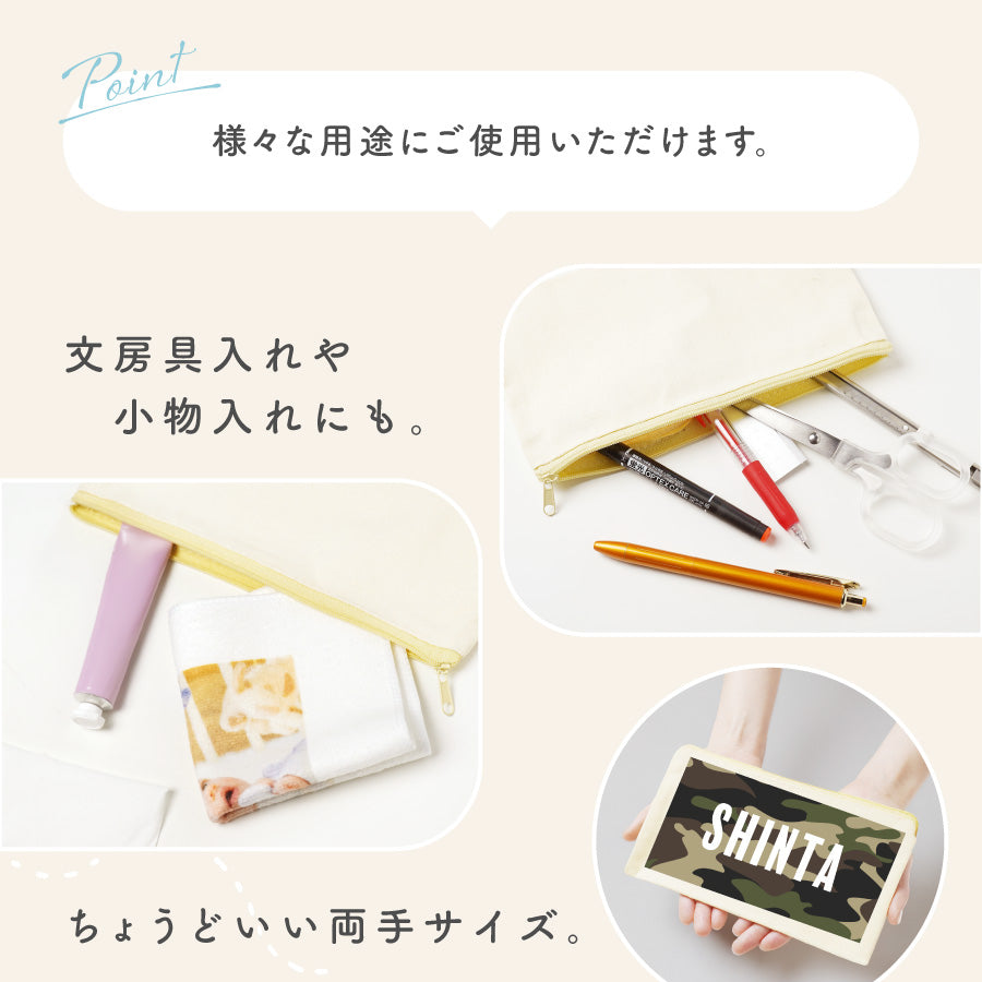 | 商品説明 | 自分なりのカスタマイズでオリジナルが作れる名入れポーチ 文房具入れや小物入れ、通帳ケースなどにもおすすめです。 出産祝い、入学祝い、入園祝いなど記念日の贈り物に、様々なシーンで喜ばれます! 【選ばれる理由】 高品質プリントで長持ち&美しい仕上がり 特殊フィルムを使った転写方式で、くっきり高発色&剥がれにくい! 生地が伸びてもプリントが割れにくく、型崩れなし◎ 熟練スタッフが一枚ずつ手作業で丁寧にプリント |
