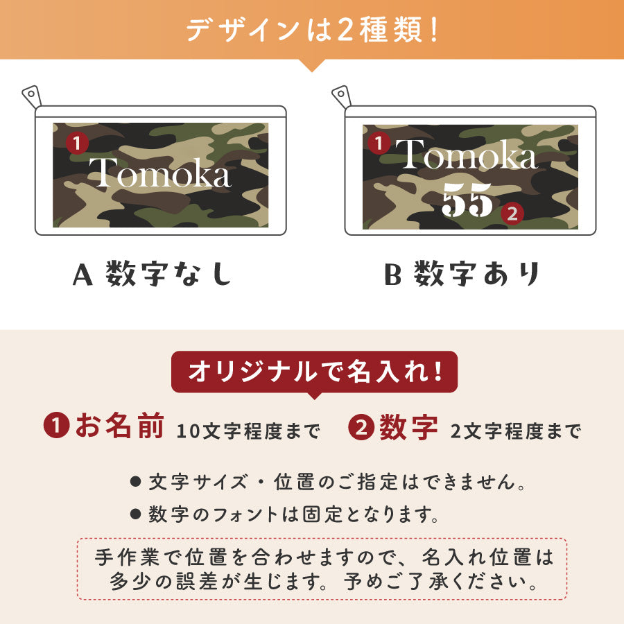 迷彩 名入れ お名前 ポーチ 小物入れ 入れ物 マチなし 文房具入れ 筆記用具 入学 お祝い おしゃれ かわいい 小さめ 大きめ ワンポイント