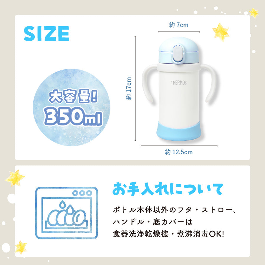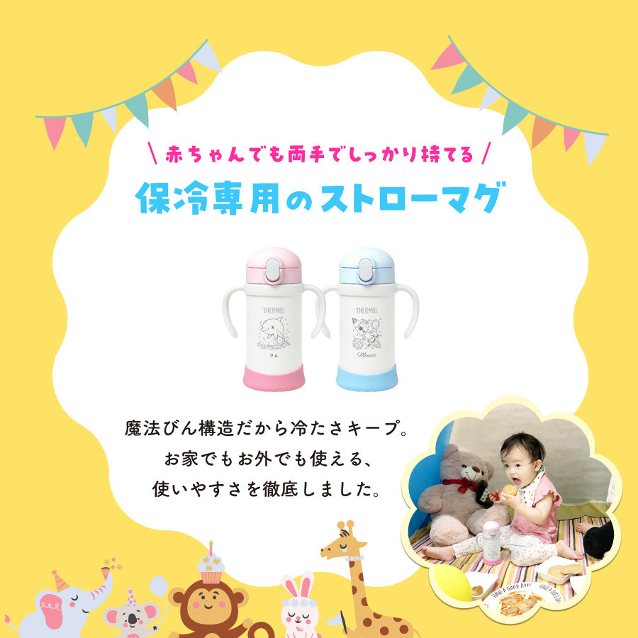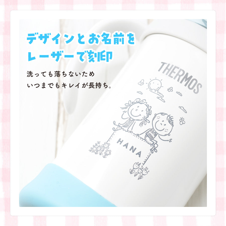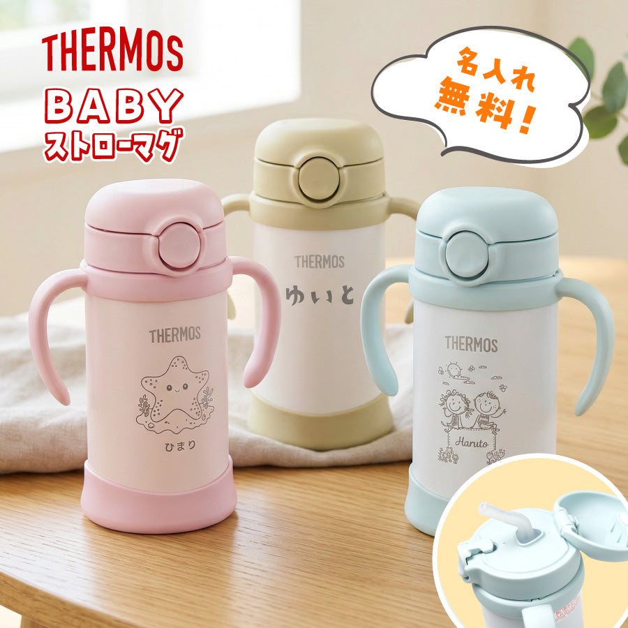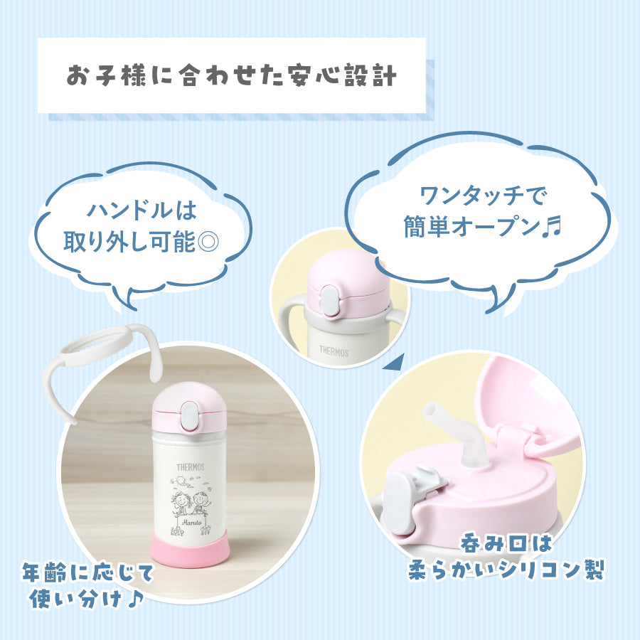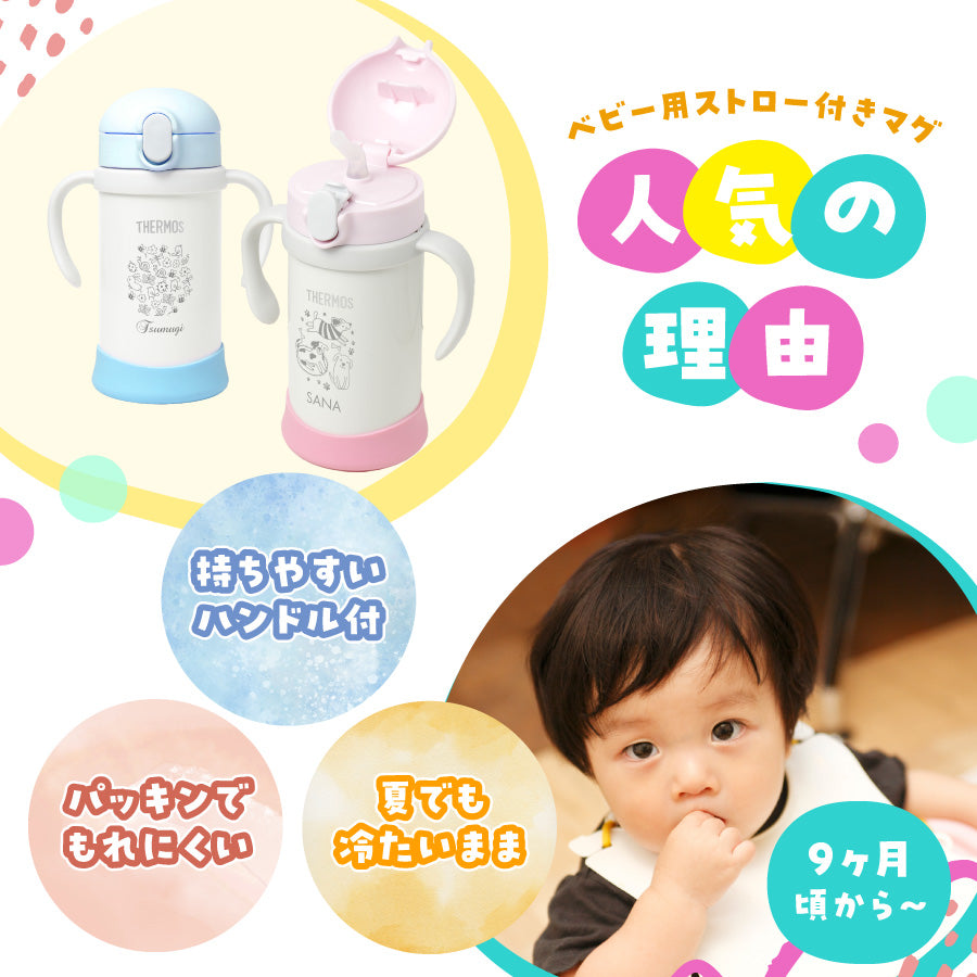 ベビーストローマグ サーモス カップ レーザー 名入れ 350ml 赤ちゃん 両手持ち ワンタッチ かわいい 名前入り メッセージ入れ 文字入れ
